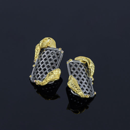 Vendor:Black rhodium and gold plated earrings adorned with tourmalines. A statement piece combining bold design with intricate craftsmanship.