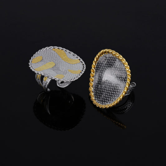 HANDMADE Ring REFLECTION - White rhodium, gold plated