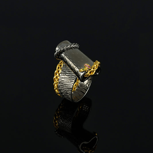 Vendor:A unique handmade ring featuring natural tourmalines, designed with black rhodium and gold-plated accents for a bold and artistic look.