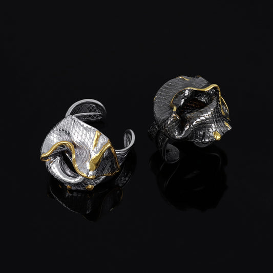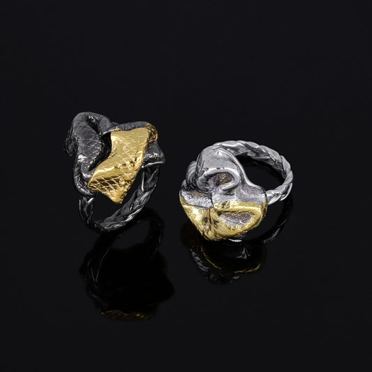 HANDMADE Rings WISDOM - Black and white rhodium, gold plated