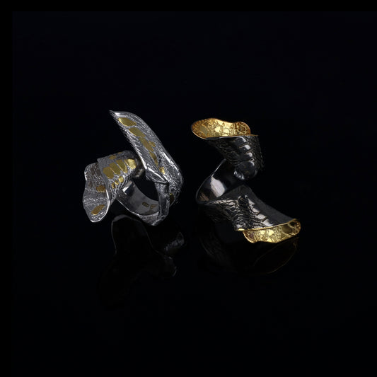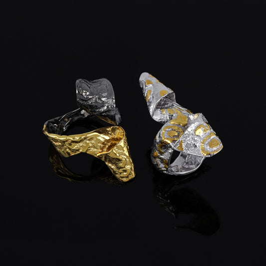 HANDMADE Ring REFLECTION - White rhodium, gold plated