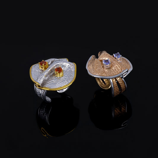 HANDMADE Rings SUNSET FLOWER - With natural ametrines