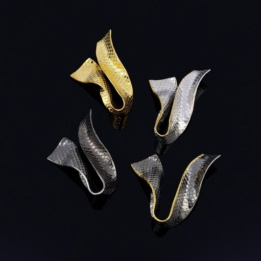 Vendor:A handmade pendant featuring a sleek, flowing design with a luxurious finish. The pendant is available in black rhodium, white rhodium, and gold plating. A modern and sophisticated accessory to elevate your style.