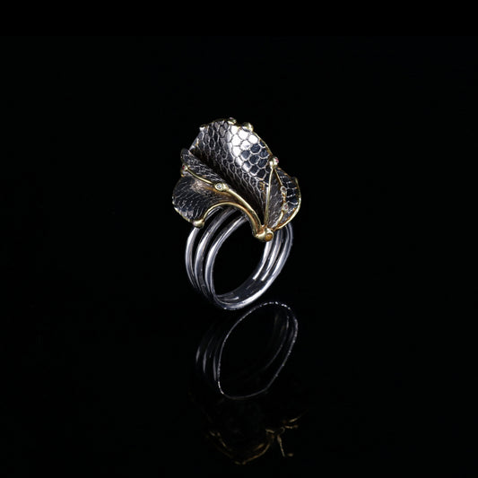 Vendor:A bold and unique handmade ring with a combination of black and white rhodium finishes, accented with gold plating.
